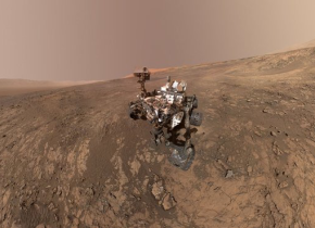 在这张由NASA的“好奇号”漫游车于2018年1月传回的“自拍照”中,地平线处的盖尔陨石坑若隐若现。