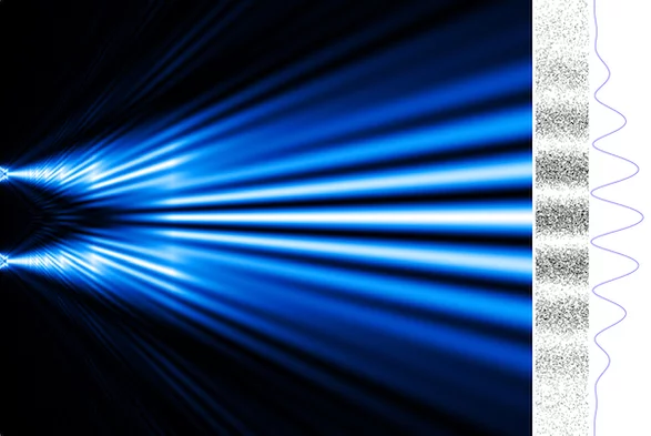 杨氏双缝实验在现代实验的版本中把独立的光子或物质粒子射过两条缝,也就是不透明屏障上的两条开口。屏障的另一边是记录粒子位置的屏幕(对于光子来说就是相机底片)。常识告诉我们光子应该只通过其中一条缝,然后在相应的缝后堆积起来。
