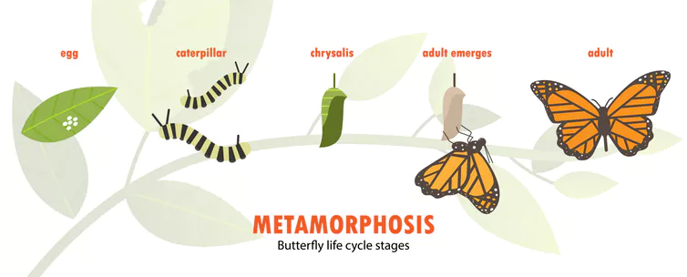 令人惊异的是,毛毛虫还在蛹里的时候,其实是一滩液体,然后再变成蝴蝶或者飞蛾(成虫时期)。