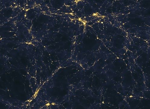 我们所见到宇宙网的形状是引力,看不见的暗物质(我们对此知之甚少)和像超新星这样的剧烈天体运动共同作用的结果。