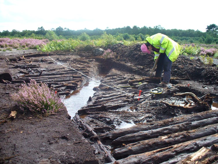沼泽有一个鲜为人知的方面是其非凡的考古潜力。至少在其未受干扰的状态下,沼泽由于饱和因而是缺氧(无氧)环境。这种情况对微生物和真菌非常不利,而这些生物通常会分解有机物质,比如植物遗体——泥碳的主要组成部分。同样,缺氧环境也会保护有机的考古学遗体免遭腐烂。我们祖先使用的绝大多数物品或建筑都由有机材料(尤其是木材)制成。它们一般不会发现于干旱的考古地点,在泥碳地却可被保存。