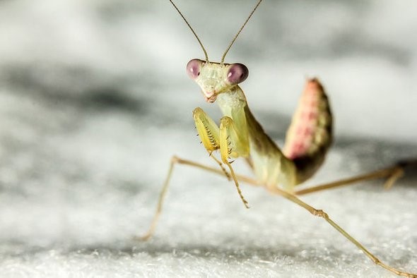 难道它是第一只会捕鱼的螳螂吗?或者只是人们没有看到过,其实和他同类的其他螳螂也能熟练掌握这一技能?通过这两种案例可以看出,我们显然低估了螳螂那大而敏锐的贪婪的眼睛。似乎很少有类似大小的螳螂不想吃的东西。它们的名字违背了事实,恰恰是其他生物才应该做祷告。(译者注:螳螂的英文名字叫praying mantis,意为祷告虫。)