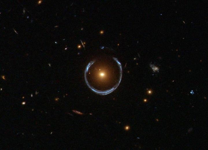 由普特茅斯大学宇宙与万有引力中心 Thomas Collett教授领导的一组天文学家利用了一个临近的星系作为一个引力透镜来做了一个引力在天文学长度尺度的精确测验。
