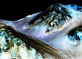 正如那些在黑尔火山口看到的那样,流动的盐水是可能导致火星斜坡上季节性地观察到的深色条纹的原因之一。一项新的研究显示,在火星表面或者近表面的某些盐水可能富含大量的氧气。该图片是利用来自NASA火星侦察轨道器上装载的高分辨率成像科学设备采集的立体观测和地形信息制作而成。