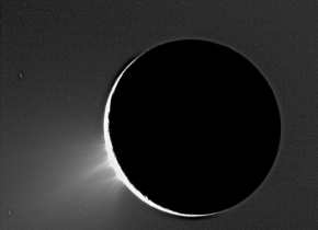 喷泉从冰冷的土星卫星土卫二喷出。(图片来源:NASA/JPL/Space Science Institute)