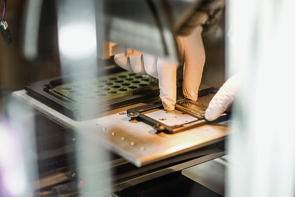 在使用设备时,研究人员首先需要将组织样品置于刻蚀在玻璃芯片表面的小孔中;随后,通过机械臂将化学试剂(用于提取和分离蛋白质)滴入每一个小孔;最后,科学家使用质谱仪来鉴定其中的蛋白质。
