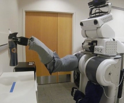 Grice和来自佐治亚理工学院和埃默里大学的华莱士·H·库尔特生物医学工程系(the Wallace H. Coulter Department of Biomedical Engineering)的Charlie Kemp教授使用了Willow Garage制造的PR2移动机械手进行了这两项研究。这台轮式机器人的活动范围达20°,配有两条手臂和一个“脑袋”,给了它操控物件的能力,比如水瓶、毛巾、毛刷甚至是电动剃须刀。