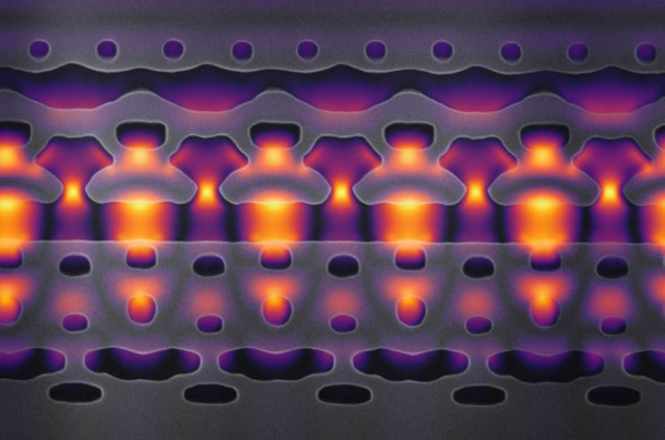 然而,要放大刻在硅上的激光驱动加速器规模会比较容易,并且能在同一块芯片上可以放下多个部件。Byer和其他几个研究人员合作,包括斯坦福大学的电气工程师Jelena Vuckovic,来造这样的工具。“你需要设计一种能正确引导光方向的结构,这样光就能总在正确的方向上提供动力——于是粒子就会被不断加速,”Vuckovic说。为了找到这样一种结构,她的学生Neil Sapra用计算机模拟了不同结构与射入电磁波相互作用的方式。一旦他们找到了一种能尽可能往正确方向加速电子的设计,研究人员就会把这种设计刻在硅片上。