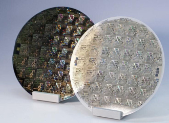 AlScN/Si层(左)和AlScN/Al2O3层(右)上已处理的表面声波(SAW)结构。 (图片来源:Fraunhofer-Gesellschaft)