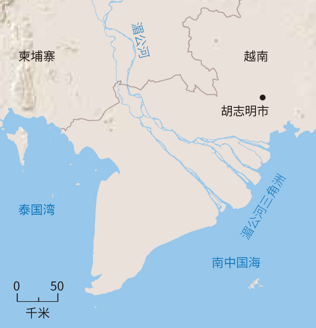 不同于石质的大陆海岸,三角洲是由河流裹挟的泥沙等杂质逐渐沉积后形成的,这些泥沙很容易沉降和堆积,可以在上千年的时间内持续积累。当上游水库蓄水阻断了河水中的泥砂补给,或者地下水(或天然气)上涌,移走三角洲下方的地基土时,三角洲的沉降现象就会迅速恶化。大面积的城市建设也会阻碍雨水下渗,当地下水得不到补充形成空腔后,也会加速地面沉降。湄公河三角洲囊括了上述所有不利因素,这使某些地区的沉降速度接近5米/年——目前全球三角洲沉降研究中观测到的最大值。按照越南国立大学水文地质学家阮宏权(Nguyen Hong Quan)的说法,整个湄公河三角洲洪灾泛滥已经是家常便饭。