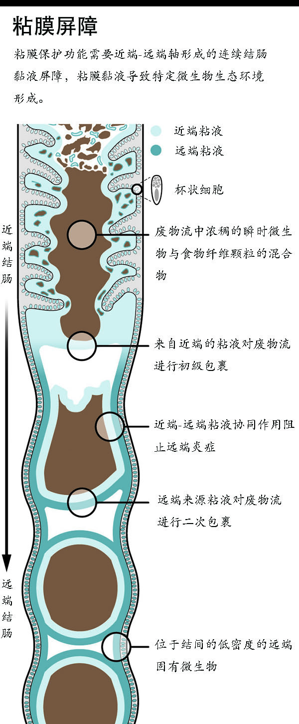 由OMRF的医学和哲学博士Lijun Xia领导的科学家团队,通过研究模型发现微生物群控制着一种黏液层的形成,黏液富含糖分,包裹粪便物并随之移动。研究人员的发现与先前设想不同,黏液作为屏障,隔开粪便中的细菌和结肠中成千上万的免疫细胞。一旦失去黏液,整个系统将完全失衡。