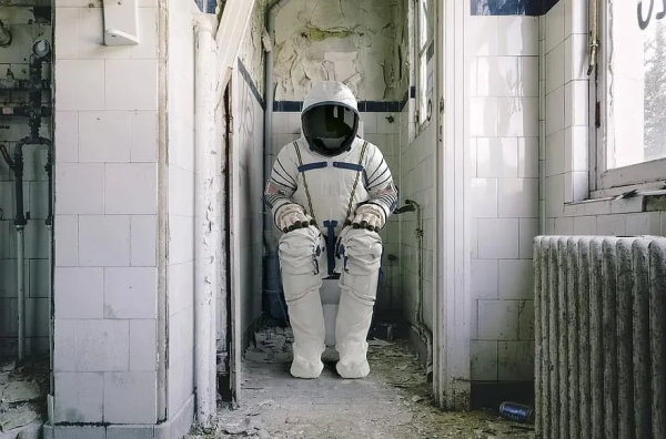 奥尔德林,第一个在月球上小便的人(他腰上绑着一个特殊的尿液收集装置),是数百名干着不平凡事情、又做出最平凡举动的宇航员之一。自人类第一次进入太空后的近60年内,工程师们认认真真钻研着宇航服、航天飞船和太空舱的技术,以适应这种地球人最普遍的行为,他们的努力持续至今:现在,宇航员们正积极准备,在国际空间站上安装一个全新的厕所。