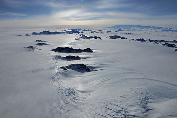 埃尔斯沃斯山脉(Ellsworth Mountains),位于冰下湖泊埃尔斯沃斯湖(Subglacial Lake Ellsworth)附近,摄于2012年12月。图片来源: Peter Bucktrout,英国南极调查局(British Antarctic Survey )