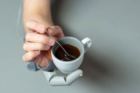 TAMAR MAKIN:这是一项完美的测试案例,因为有人可能每天使用假肢达14到16小时。假肢是用于替代手功能的一种工具。如今有一个非常占主导地位的观点,这个观点从哲学延伸到工程学、心理学,再到流行文化,即如果我们作为专家使用工具,那么我们的大脑表现它们的最佳方式,就是把它们当作我们身体的一部分 .