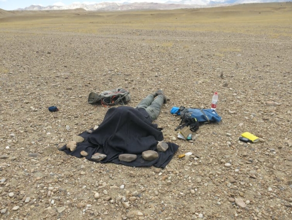 西藏Su-re地表人工制品的实地考察与取样。 图片由作者Michael Meyer提供