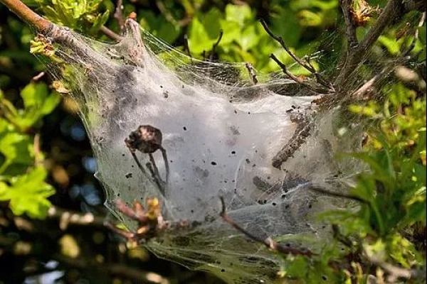 黄毒蛾幼虫的孵育网。图片来源:ajmatthehiddenhouse, CC BY 2.0
