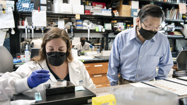 格莱斯顿研究所的科学家证实,当神经元接触高浓度的apoE蛋白后会变得对退变更加敏感,而这与更高的阿尔茨海默病患病风险相关。照片为在实验室工作的论文作者妮可·库索登瑞斯(Nicole Koutsodendris)(左)和黄亚东(Yadong Huang)(右)。来源:迈克尔·肖特(Michael Short),格莱斯顿研究所