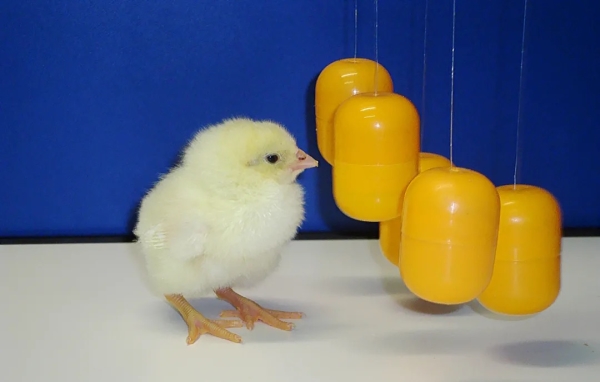 刚出壳的小鸡会对面前的物体形成印痕。帕多瓦大学大学心理学家Rosa Rugani证明,形成印痕的小鸡或能用代数方法追踪这些物体的数量。图片来源:Rosa Rugani