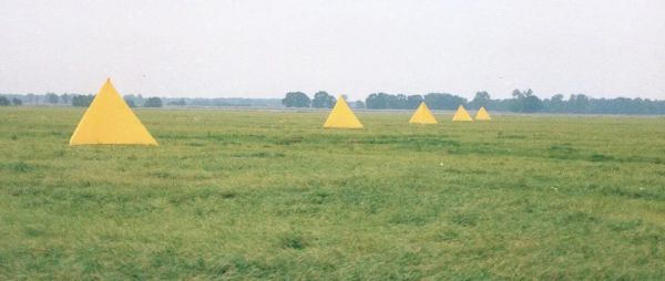 蜜蜂能数地标。在这项研究中,地标是一组黄色帐篷,帮助它们导航到蜜源地。图片来源:Lars Chittka