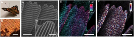 在可视化蝴蝶翅膀生长的过程中,科学家观察到了微米级大小的鳞片,以及单个鳞片上更小的纳米尺度的条纹的形成。