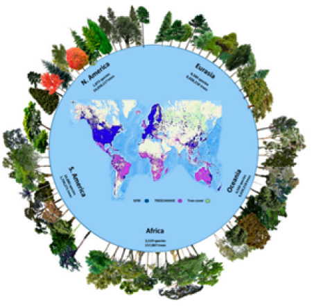 该研究的作者利用这些数据库计算出地球上大约有64100种已知树种,高于之前估计的约60000种。该团队发现南美洲的树木生物多样性最高,占物种总数的43%,其次是占22%的欧亚大陆,非洲、北美以及大洋洲则分别占16%、15%和11%。