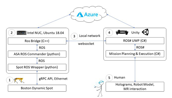 “空间计算和个体中心感知在混合现实设备上的结合使它们能够捕获、理解人类活动并为其赋予空间意义,这为人机结合提供了令人激动的新可能。”研究人员在他们的文章中写道,“这篇文章介绍了一些使用这种技术实现新的机器人应用实例的人机系统,例如巡查任务规划、手势控制以及沉浸式远程控制。”该研究团队设计的基于混合现实与机器人技术的框架已经在三个具有不同功能的系统上实现。值得一提的是,这些系统都需要使用HoloLens混合现实头戴式设备。