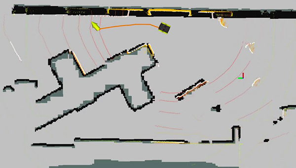 该团队创建的第一个系统将HoloLens地图(上图)转换为2D占用网格的表示方式,并与网格的坐标框架对齐,从而使机器人可以使用激光雷达进行定位。(图片来源:Delmerico et al.)