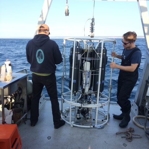 研究人员准备将设备样品放入澳大利亚东部的Port Hacking。(图片来源:悉尼科技大学)