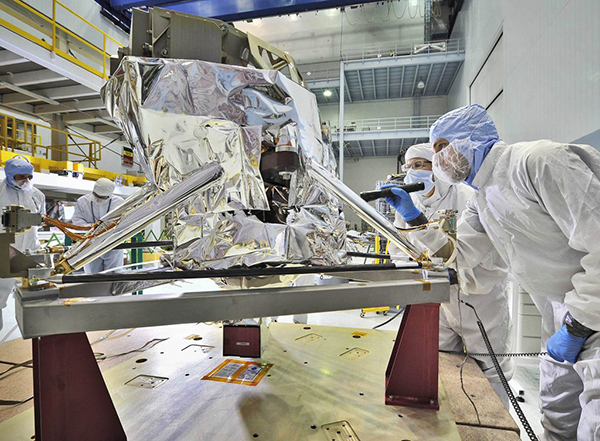 科学家们在仔细检查MIRI。(图片来源:NASA/Chris Gunn)