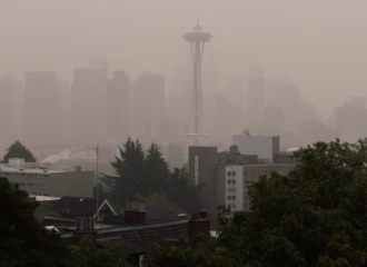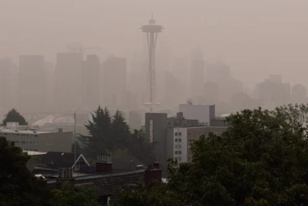 城市中的野火烟雾,摄于美国华盛顿州西雅图太空针塔(2020年9月16日)。图片来源:原文