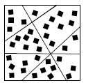 请用四条直线将下列图形下图分成8个区域,8个区域内小方块的数目分别为1, 2, 3, 4, 5, 6, 7,8。