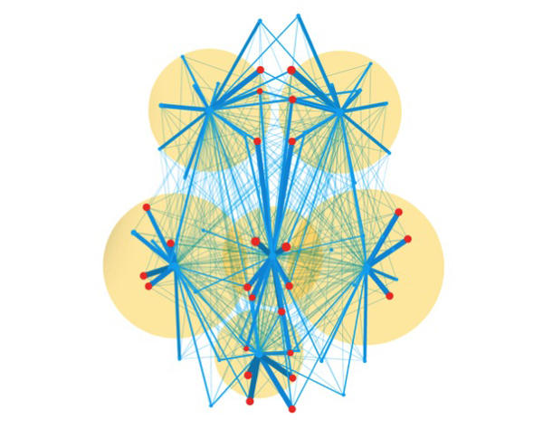 图片改自《人类大脑皮层中心结构图》(P. Hagmann et al., in PLoS Biology, vol. 6. No . 7; 2008绘制),为2011年1月《科学美国人》杂志“100万亿个连接”一文的插图,文章作者:Carl Zimmer。