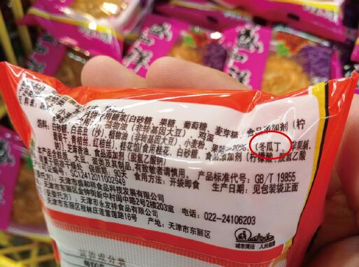 ▲百果月饼配料的 第一行,赫然出现了 “冬瓜丁”三个字