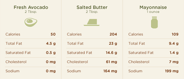 △不过,等量的牛油果比起黄油或蛋黄酱,热量要低很多(图片来源于网络)