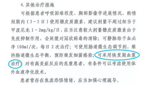 其实,血浆疗法很早就存在。早在十九世纪内人们就发现,恢复期患者的血浆对于治疗白喉和破伤风有效,感染过某些传染病而又幸存下来的人,能对再次感染产生一段时间的免疫力,有时甚至是永久性的免疫。这也是疫苗免疫的基础。血浆疗法在二十世纪上半叶被广泛用于治疗各种疾病,如麻疹、腮腺炎、肺炎、休克、严重创伤、其他严重感染等。