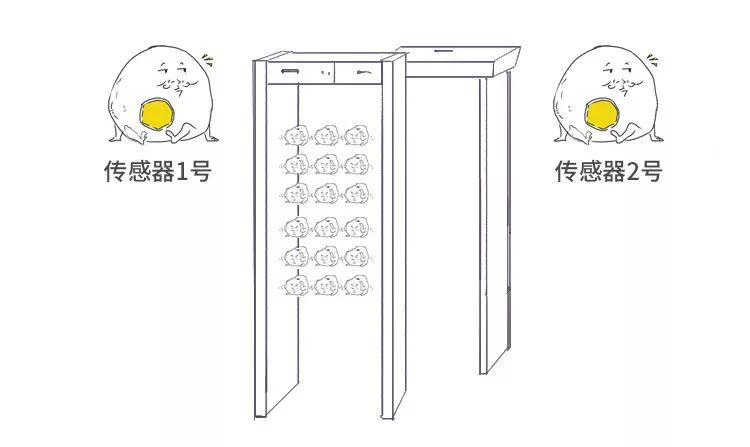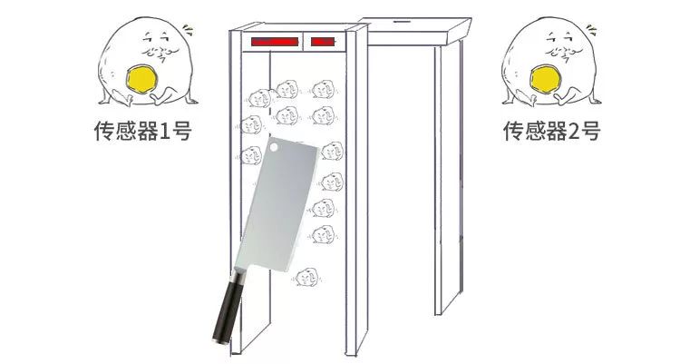 其工作原理可以简述为:安检门两侧装有传感器,可以发射和接收交变电磁场,当有金属物体靠近该磁场时,就会影响磁场的分布,从而使得此范围内的磁通量发生变化,磁通量的变化会产生电流,进而引发报警。