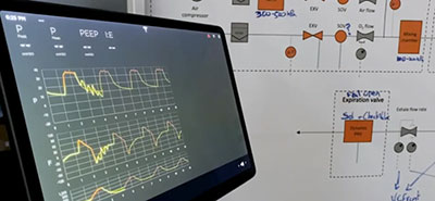 其次是呼气时,人的肺不是真的像气球打气一样只进不出,呼吸机更像是带通气阀的口罩。呼气时阀门是需要打开的,人才能把气呼出来,直到肺和外界的压力一样。同时,呼气回路还有PEEP阀门,用来在呼吸末期在呼吸道保持一定的正压,也就是让呼吸的哪个阶段都能保持平稳。