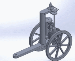 还有一种更加精准的工作原理,如下图,是根据每个轴相互配合所得出的角度差来带动指南小人,正常行驶时左轮与右轮曲轴度正负抵消,指南小人不转动;转弯时正负曲轴度有偏差,偏差带动小人转动指向南方。