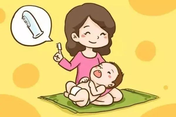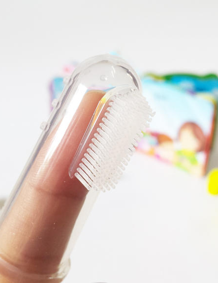 科科长出第一颗牙齿的这天,她的爸妈给她准备了一份小礼物——指套牙刷。