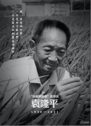 2021年5月22日13时07分,91岁的袁隆平院士,因多器官功能衰竭在长沙逝世。