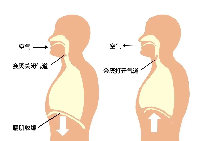 和其他人体器官一样,膈肌的运动同样受神经系统调节,当突然吸入冷气、大笑、饮水过快等行为产生的刺激传入大脑,大脑就会发出信号,引起阵发性的膈肌痉挛。快速的膈肌收缩,导致空气迅速吸入,吸气时胸腔压力的改变,引起会厌软骨关闭导致声门骤然缩窄,让我们无比尴尬的“嗝”声就是这样产生的。
