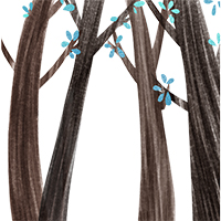 通过一年又一年的合成营养,细胞会多次分裂,树木就会越长越高,树干也就变得越来越粗。像白杨树这样的树干从外到内可以分为:树皮、韧皮部、形成层、木质部和髓。树皮就是树干的表层,它有着保护树身、防治虫害的作用。