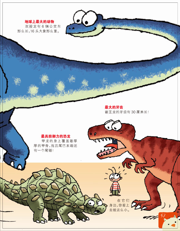 恐龙统治了地球约2亿年,它们体型各异,有的很大,有的很小!你可以看到……
