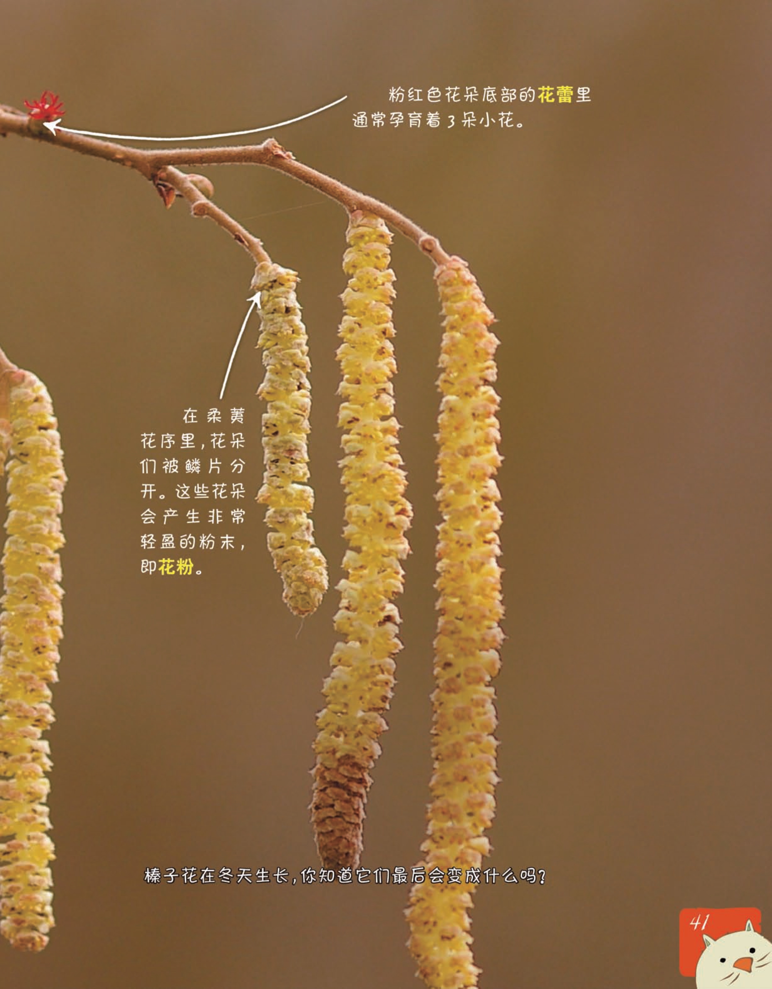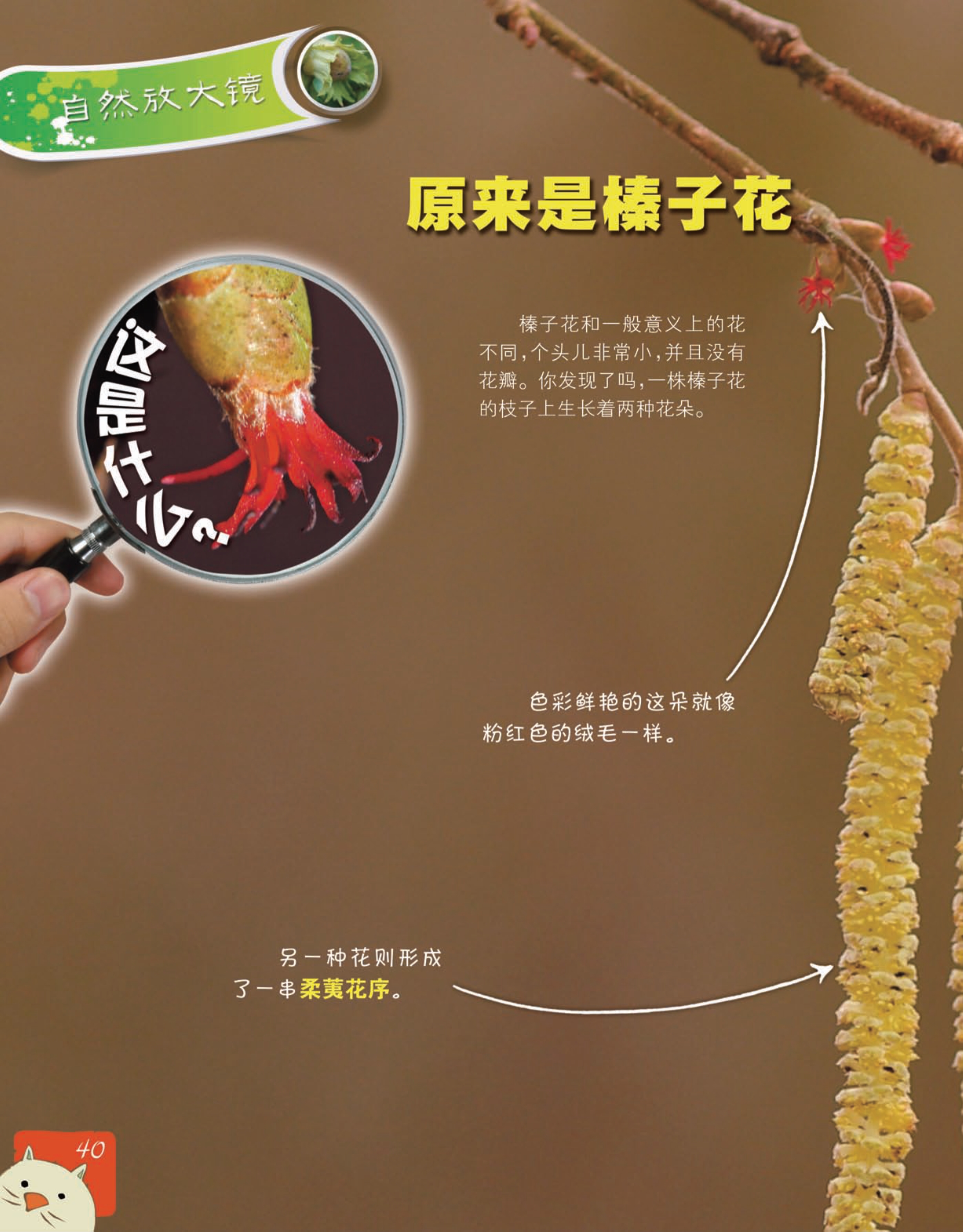 榛子花和一般意义上的花不同,个头儿非常小,并且没有花瓣。你发现了么,一株榛子花的枝子上生长着两种花朵。