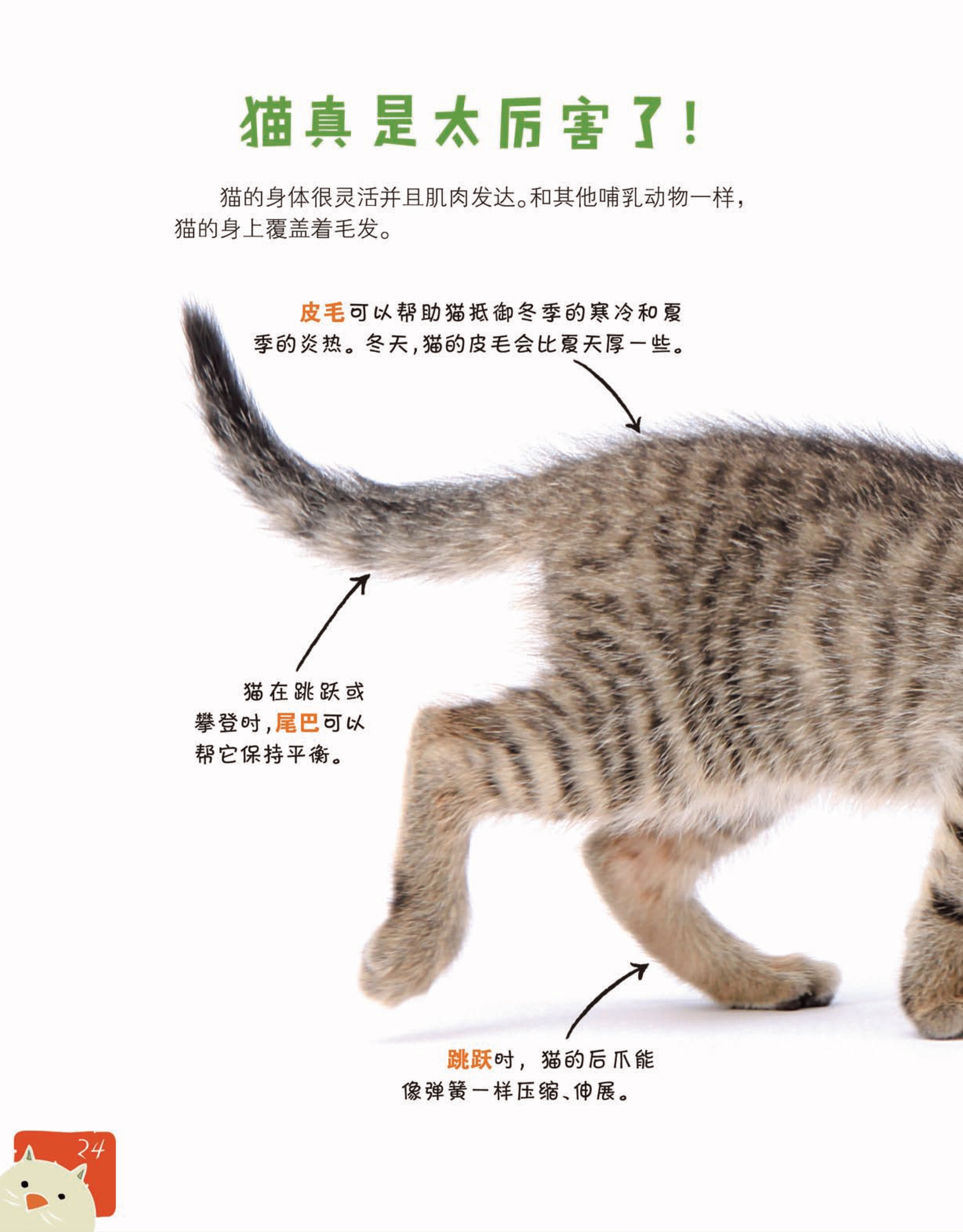 猫的身体很灵活并且肌肉发达。和其他哺乳动物一样,猫身上覆盖着毛发。皮毛可以帮助猫抵御冬季的寒冷和夏季的炎热。