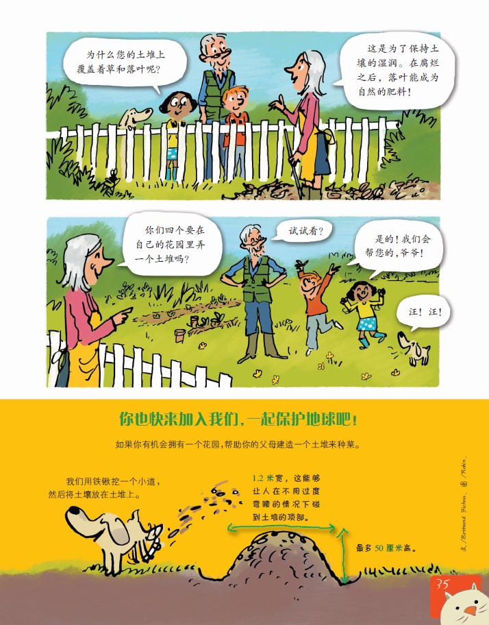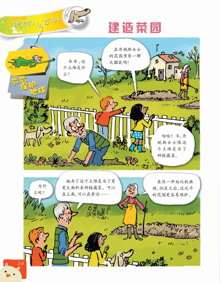 爷爷,这个土堆是什么?在丹妮斯女士的花园里有一群大鼹鼠吗?哈哈!不,丹妮斯女士堆这个土堆是为了种植蔬菜。