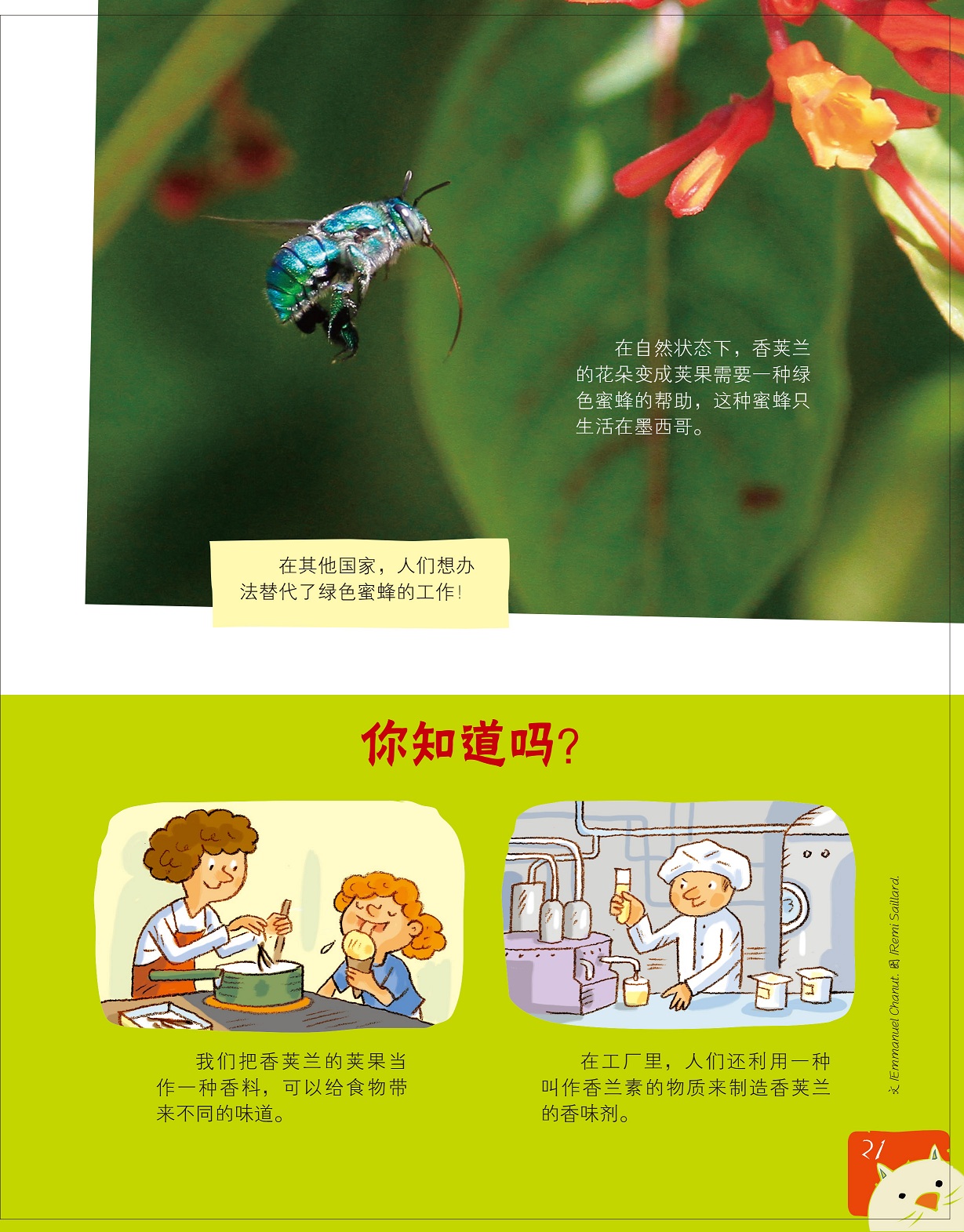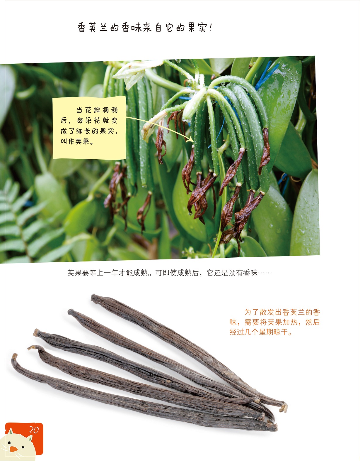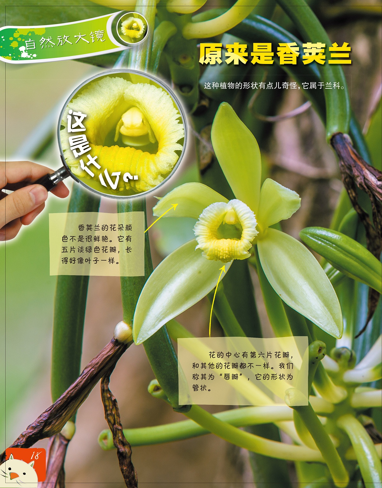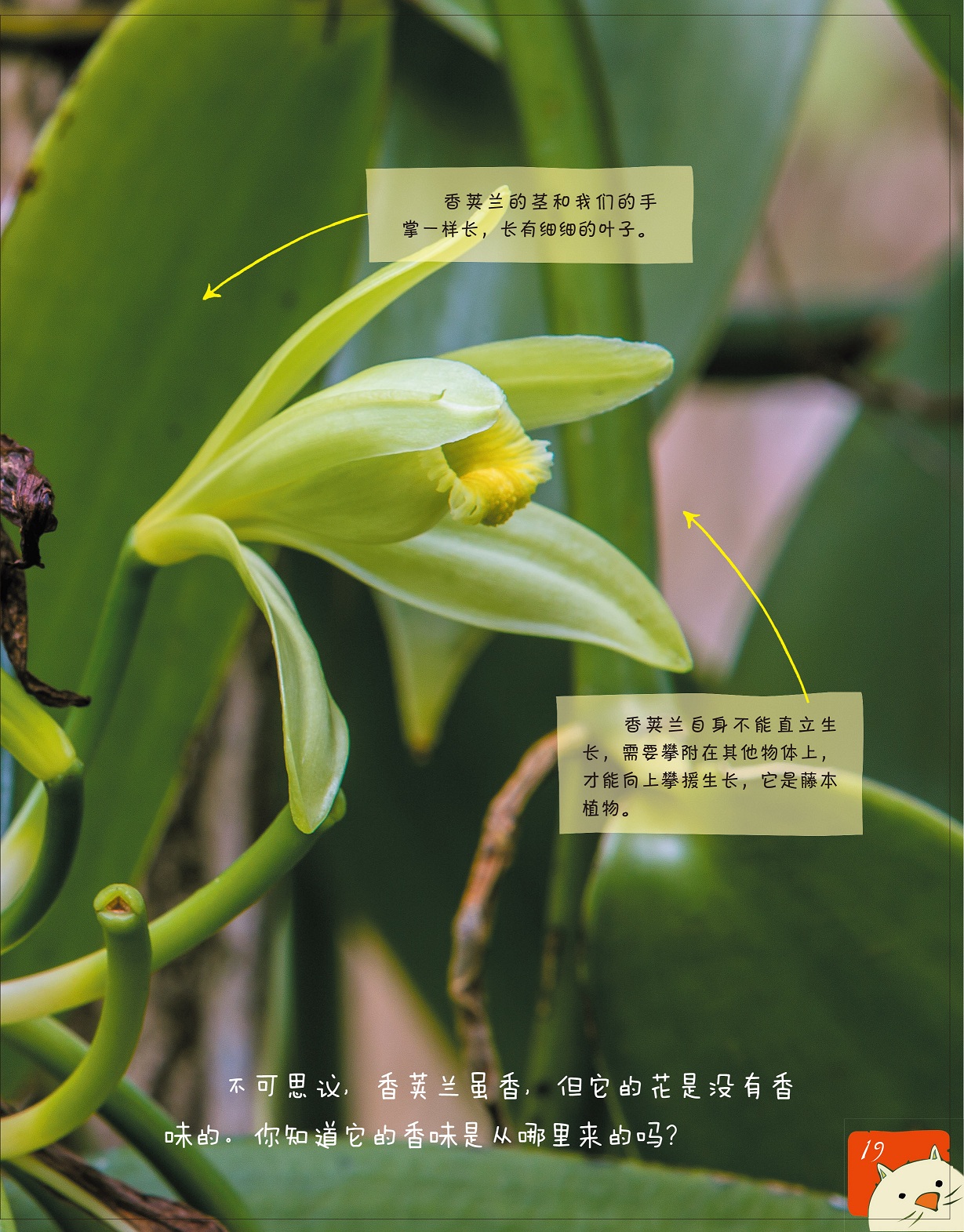 香荚兰的花朵颜色不是很鲜艳。它有五片淡绿色花瓣,长得好像叶子一样。