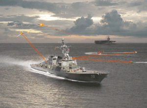 在2009年的试验中,雷锡恩公司曾经利用“激光密集阵”系统在新墨西哥州的白沙导弹靶场摧毁了5 架靶机。当时,试验是在一种晴朗、干燥的沙漠环境下进行的,而海洋环境中的水汽会显著干扰定向能武器的作战效能,成为装备在军舰上必须面临的一个重要挑战。