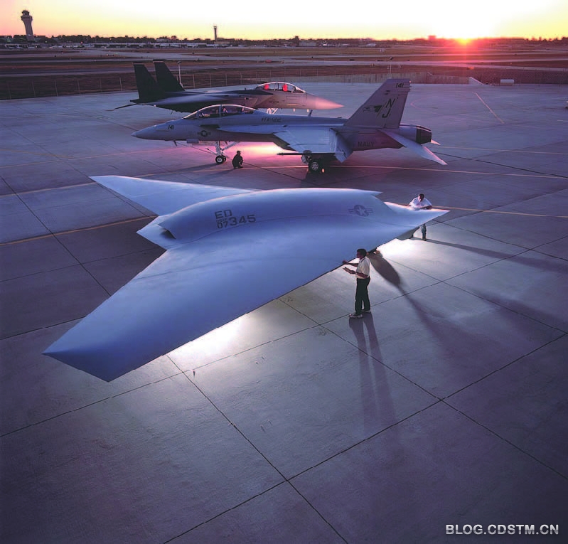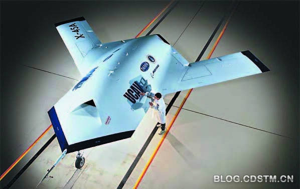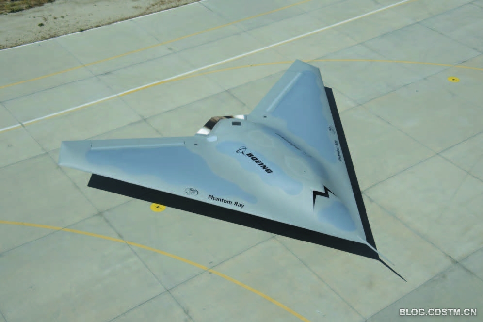 从俯视角度,可以一目了然地看到“鬼怪鳐”的总体布局,与原来的X-45A外形已经有了根本性的区别