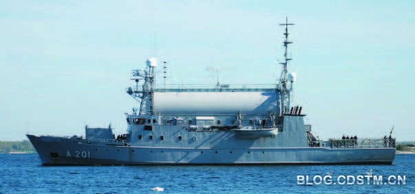 与美、俄两个侦察船大国相比,英、法、日、瑞典等国的侦察船数量不多,除了一些测量船之外,能够称得上是“侦察船”的则少之又少,屈指数来,英国拥有1艘“斯哥特”级侦察船,法国拥有1艘“迪皮伊·德·洛美”号侦察船,日本拥有1艘“曰南”号侦察船,瑞典拥有1 艘“猎户座”号侦察船。这其中最具特色的要数瑞典的“猎户座”号。该船舱面前后桅杆之间连接着一个大型的圆柱体,里面装有瑞典军方高度机密的天线等设备,并与功能强大的计算机相连接,可使舰艇搜集并监控大范围内的信号。